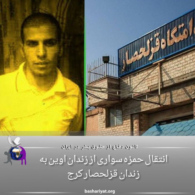حمزه سواری که اخیرا به همراه ۱۲ زندانی سیاسی دیگر از زندان اوین به زندان قزلحصار کرج منتقل شده، اعلام کرد که هر ۱۲ نفر از همان زمان دست به اعتصاب غذا زدهاند. حمزه سواری در بخشی از نامه خود زندان قزلحصار کرج را قتلگاهی وحشتناک برای زندانیان محبوس در این زندان توصیف کرده و نسبت به وقوع یک فاجعه انسانی در این زندان هشدار داد و نوشت “در این زندان زندانیان سنیمذهب، زندانیان سیاسی، زندانیان در انتظار اجرای حکم اعدام، زندانیان تنبیهی و خطرناک … همه در کنار هم نگهداری میشوند. جان تمام زندانیان این زندان به معنی دقیق کلمه در خطر دائم است.”