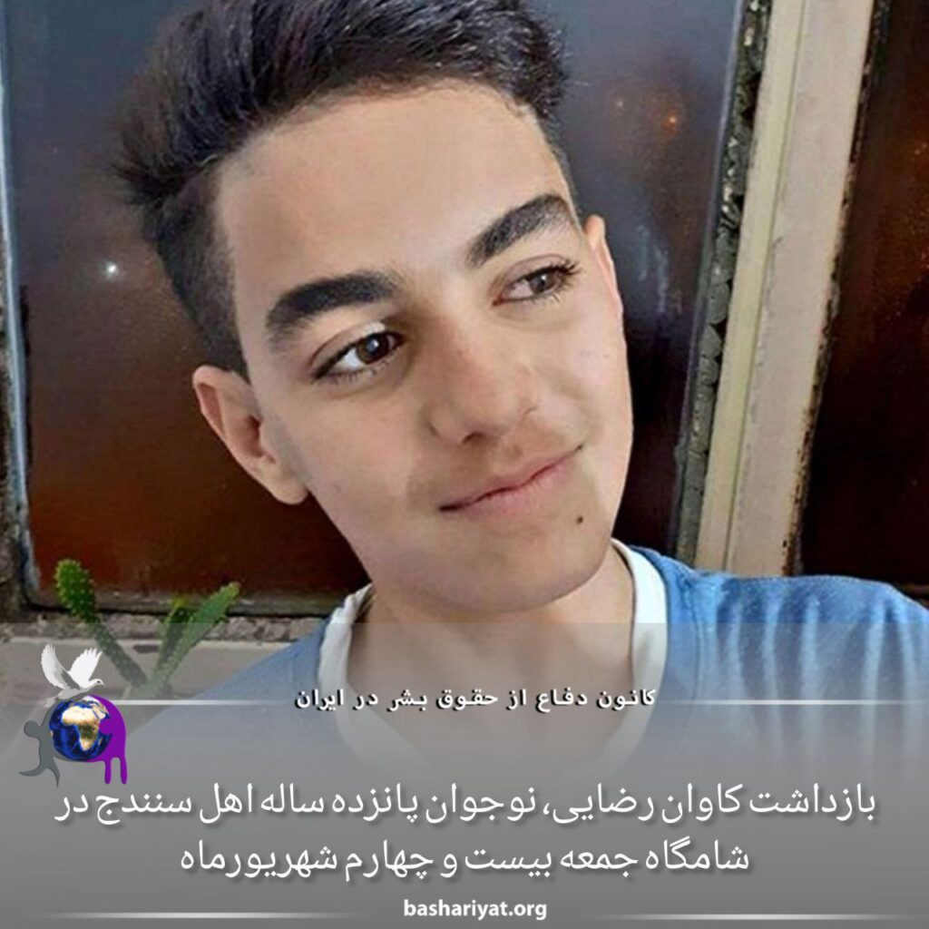 شامگاه ۲۴ شهریور ماه ۱۴۰۲ کاوان رضایی نوجوان ۱۵ ساله توسط ماموران اداره اطلاعات سنندج بازداشت و به مکان نامعلومی منتقل شد. از علت بازداشت و اتهامات منتسب به او اطلاعی حاصل نشده است.