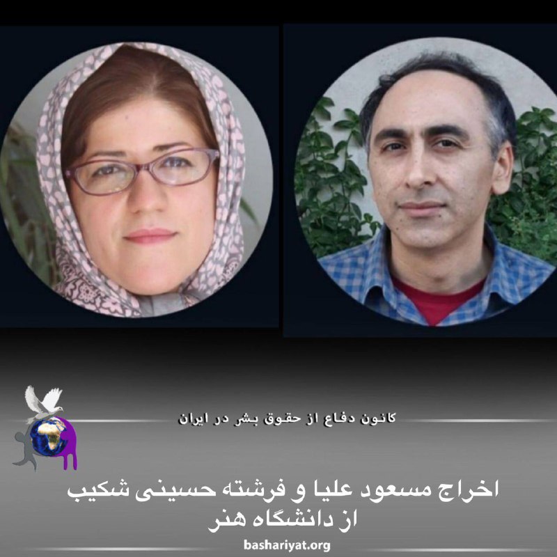 #مسعود_علیا و #فرشته_حسینی_شکیب دو استاد دانشگاه هنر از اخراج خود خبر دادند. مسعود علیا استاد فلسفه هنر در صفحه اینستاگرام خود نامهای را منتشر کرده است که بر مبنای آن مسئولان دانشگاه به وی اطلاع دادهاند که با «تمدید قرارداد پیمانی دائم» وی موافقت نشده است. فرشته حسینی شکیب استاد انیمیشن دانشگاه هنر نیز از اخراج خود از این دانشگاه خبر داد.