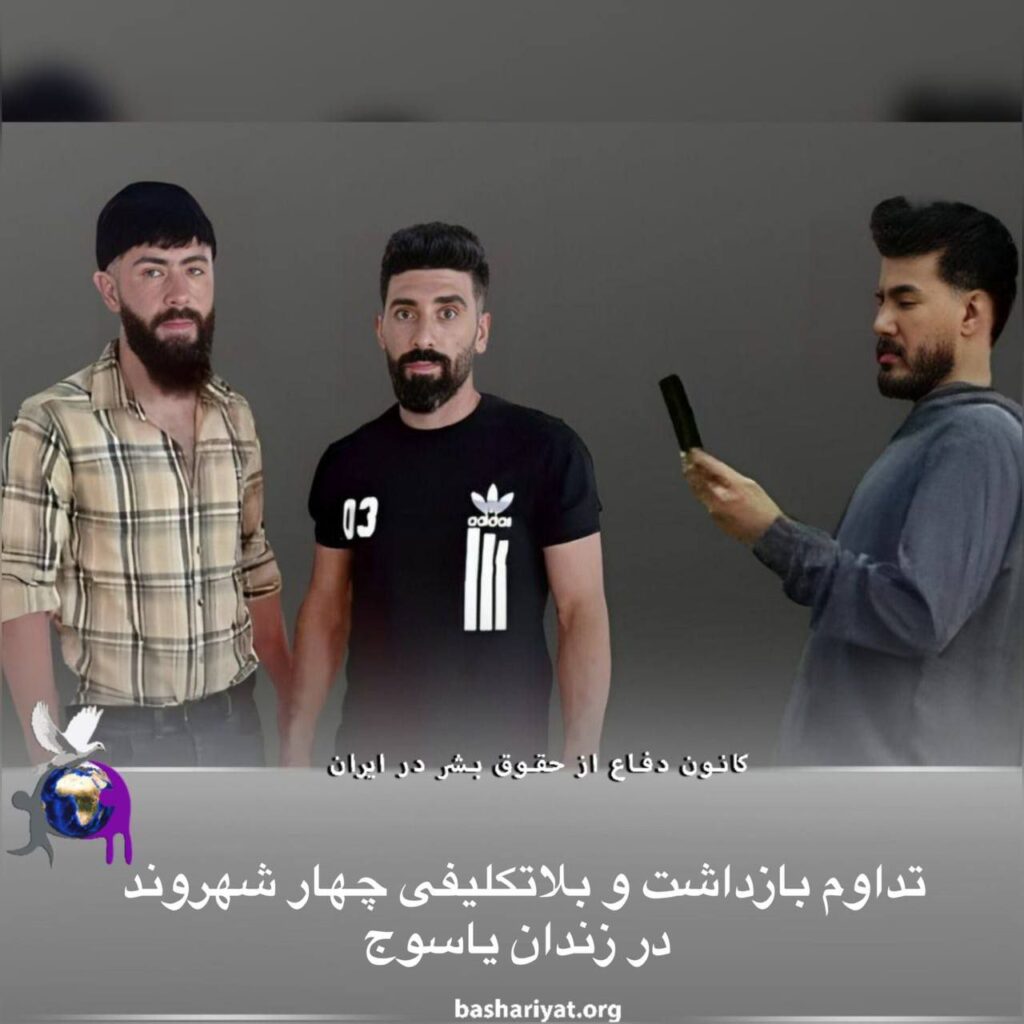 #فرشاد_اعتمادی_فر، #سامان_حرمت_نژاد،#داوود_حرمت_نژاد و #ماهان_ساجدی، شهروندان ساکن روستای پیچاب از توابع شهرستان باشت، علیرغم گذشت بیش از سه ماه از زمان دستگیری، کماکان به صورت بلاتکلیف درزندان یاسوج بسر میبرند.