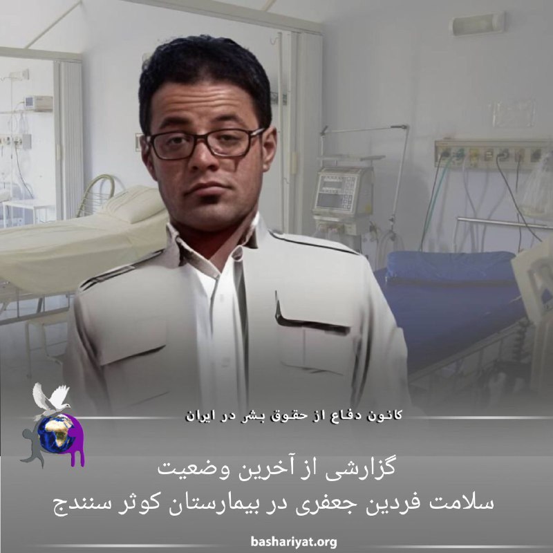 #فردین_جعفری جوان توان‌خواه اهل #سقز که بر اثر شلیک مستقیم نیروهای حکومتی زخمی و به مراکز درمانی #سنندج (سنه) منتقل شده بود، کماکان در وضعیتی وخیم به سر می‌برد و غیر از پلک زدن، توان حرکتی دیگر اعضای بدنش را از دست داده است.
