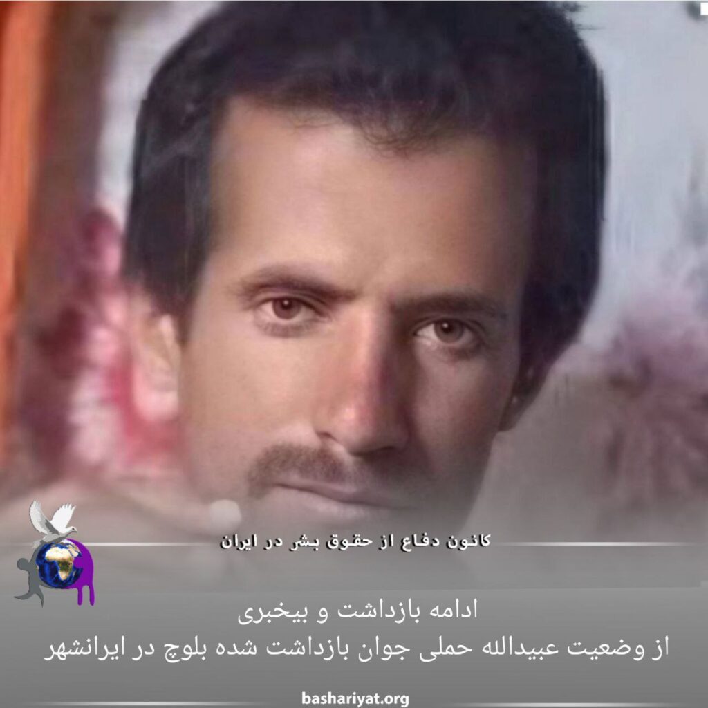 روز سه شنبه ۱۸ مهرماه ۱۴۰۲، #عبیدالله_حملی فرزند #عبدالله توسط نیروهای امنیتی در ایرانشهر بازداشت شد.آقای حملی در حین بازداشت مورد ضرب و جرح قرار گرفته و پای او توسط نیروهای حکومتی شکسته است که پس از انتقال به بیمارستان و پلاتین کردن پای او، به مکان نامعلومی منتقل شده است.پس از گذشت ۲۰ روز از زمان بازداشت، از اتهامات انتسابی، محل نگهداری و شرایط جسمانی آقای حملی اطلاعی در دسترس نیست.
