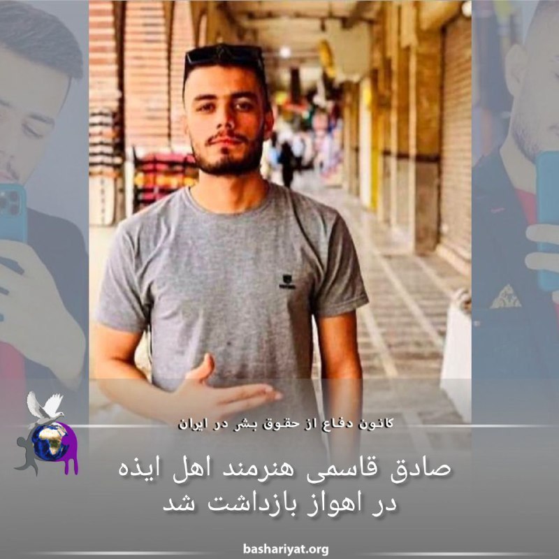 #صادق_قاسمی، شهروند جوان اهل #ایذه و خواننده رپ توسط نیروهای حکومتی جمهوری اسلامی ایران در شهر #اهواز، مرکز استان #خوزستان بازداشت شده است.
