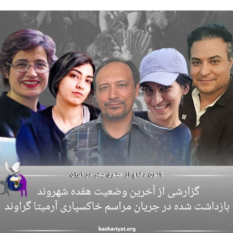 شماری از شهروندان در جریان مراسم خاکسپاری #آرمیتا_گراوند، بازداشت شدند. هویت هفده تن از آنان که اکنون در بازداشت بسر میبرند را به نام های #حمید_عباس_پور، #هاشم_مهرعلیان، #مجید_هوشنگ_کیان_پور، #محمدرضا_فخیم_آور، #مهران_حاجی_هاشمی، #اصغر_سیدفرجی، #علی_سوخته_زا، #رامتین_بنده، #ایمان_میری، #سیامک_مسیح_پور، #یوسف_هوشیار، #محمد_فضل_اللهی، #مسعود_زینال_زاده، #محمد_گراوند، #نسرین_ستوده، #نیلوفر_میرزایی و #نگار_استادآقا، احراز شده است. این شهروندان در #زندان_اوین و #زندان_قرچک_ورامین نگهداری میشوند.