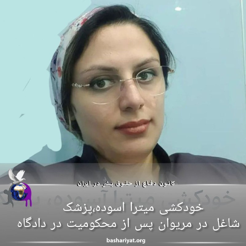 چند کانال پزشکان و نزدیکان #میترا_آسوده پزشک شاغل در #مریوان، اعلام کردند این پزشک در پی اقدام به خودکشی درگذشته است. طبق این گزارشها، این پزشک دو روز قبل در دادگاهی در #سنندج در ارتباط با پرونده فوت یکی از بیمارانش در فروردین ۱۴۰۱، محکوم شده بود.