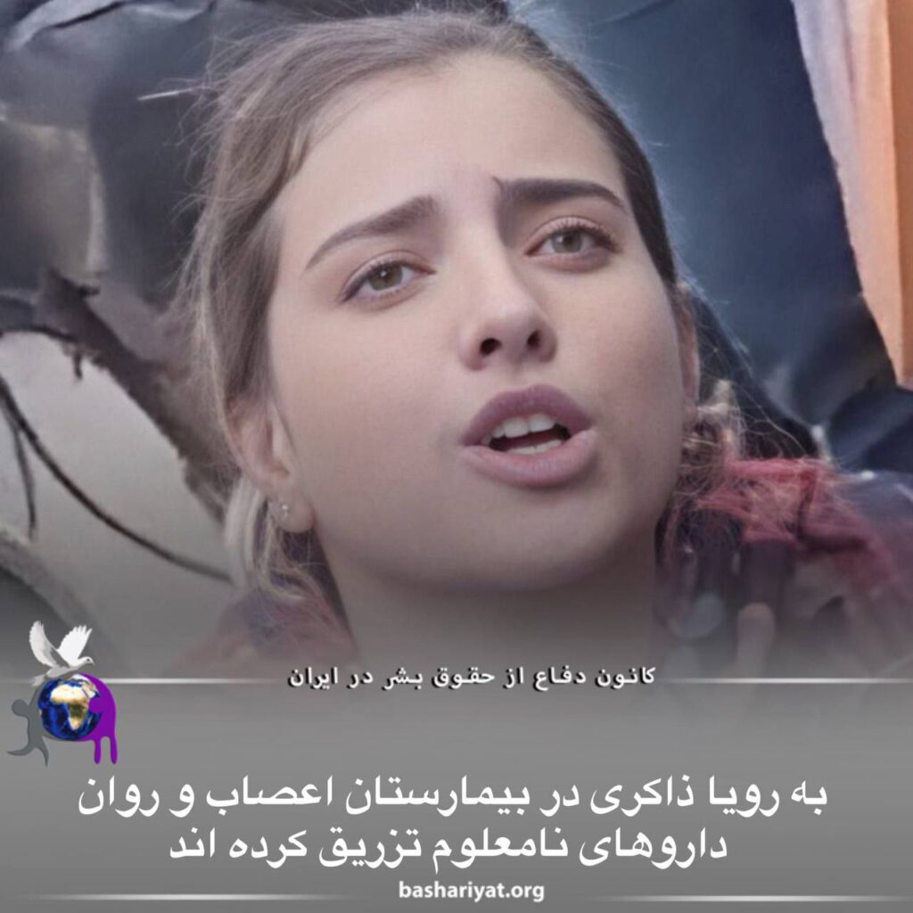 #رویا_ذاکری، معروف به دختر تبریز، امروز از بیمارستان (اعصاب و روان) رازی تبریز مرخص شده ولی تحت تاثیر تجویز و تزریق داروهای نامعلوم در وضعیت نامناسب روحی قرار دارد. رویا ذاکری، ۳۱ ساله و فارغالتحصیل کارشناسی ارشد رشته کامپیوتر است که در روز ۲۳ مهر، به دلیل نداشتن حجاب اجباری، مورد حمله نیروهای امنیتی قرار گرفت. شاهدی که در آنجا حضور داشت گفته بود که معترضان را در تبریز به بیمارستان اعصاب و روان رازی منتقل میکنند و به آنها داروهای نامعلوم تزریق میکنند.