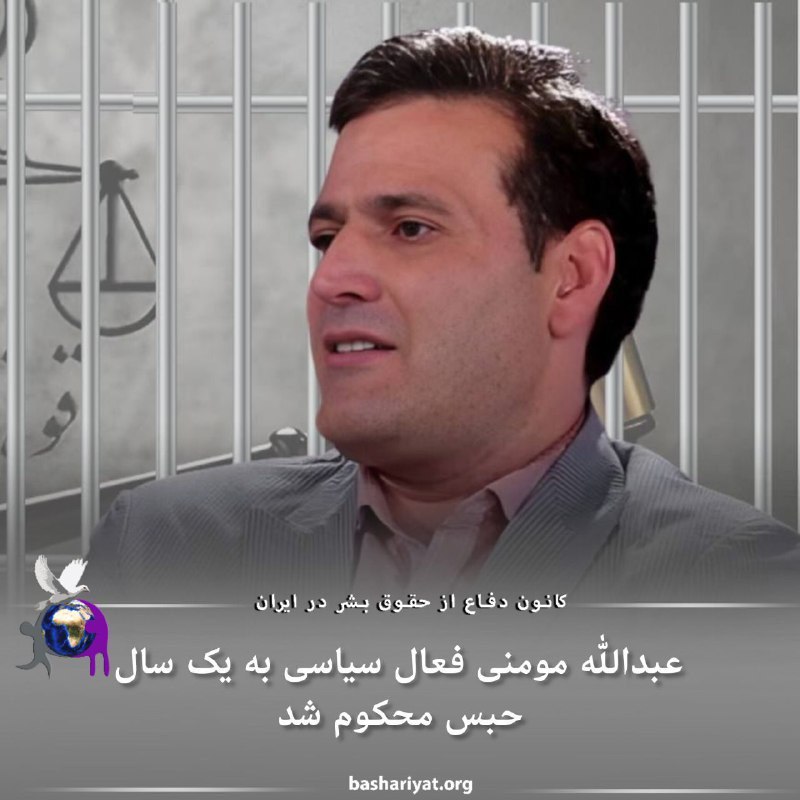 عبدالله مومنی، فعال سیاسی ساکن #تهران که در سال جاری بازداشت شده بود، توسط دستگاه قضایی جمهوری اسلامی ایران به یک سال حبس تعزیری محکوم شد.اخیرا عبدالله مومنی، توسط شعبه ۲۹ دادگاه انقلاب تهران به ریاست قاضی مظلوم با اتهام “فعالیت تبلیغی علیه حکومت” به یک سال حبس تعزیری محکوم شد. او همچنین، به توقیف تلفن همراه و تمامی وسایل الکترونیکی به نفع دولت محکوم شده است.