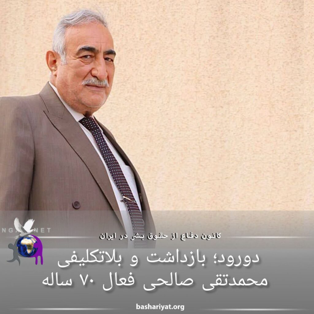 محمد تقی صالحی، شهروند ٧٠ ساله اهل_دورود از توابع استان لرستان، توسط نهادهای حکومتی جمهوری اسلامی ایران بازداشت شده و با گذشت یک هفته، با بلاتکلیفی کامل در بازداشت نگهداری میشود.