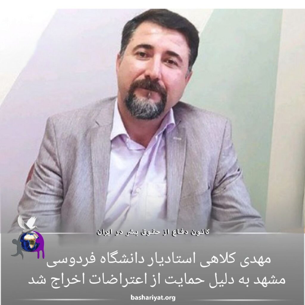 #مهدی_کلاهی، استادیار جامعهشناسی محیط زیست #دانشگاه_فردوسی_مشهد اعلام کرد «به دلیل شرکت در اعتراضات دانشجویان در سال ۱۴۰۱»، از دانشگاه اخراج شد.