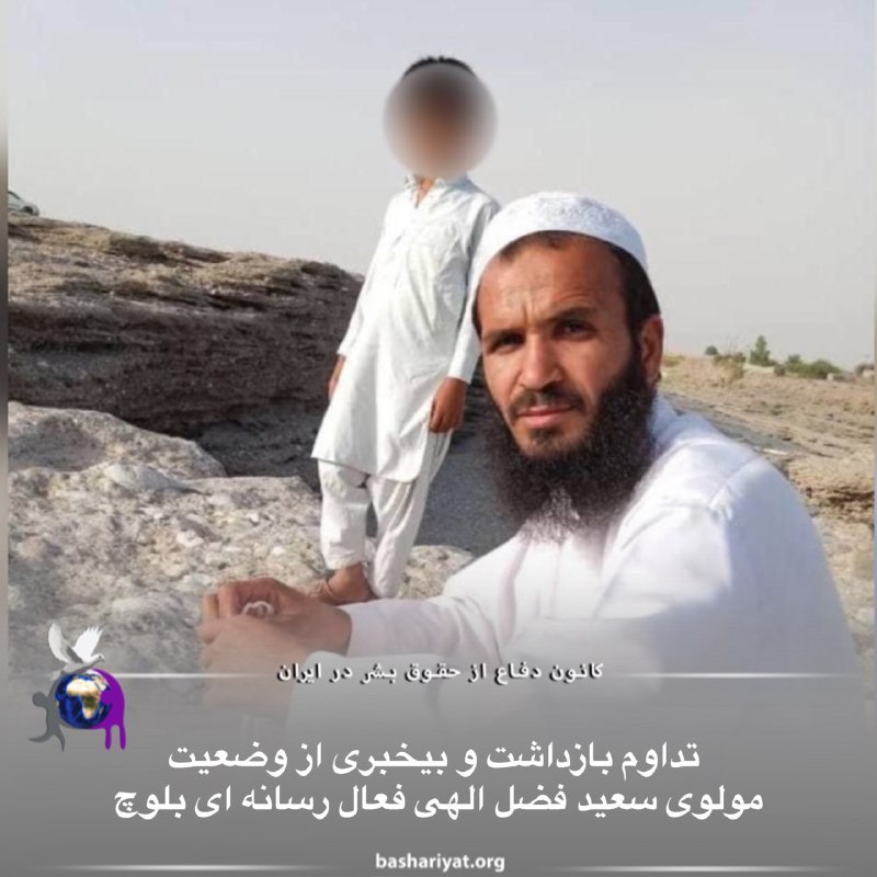 مولوی «#سعید_فضل_الهی» فعال مذهبی، رسانه ای #بلوچ که در روز ۱۷ آبان ۱۴۰۲، در شهرستان دلگان توسط نیروهای امنیتی بازداشت و به مکان نامعلومی انتقال شده بود با گذشت دو هفته کماکان از وضعیت وی اطلاعی در دست نیست.