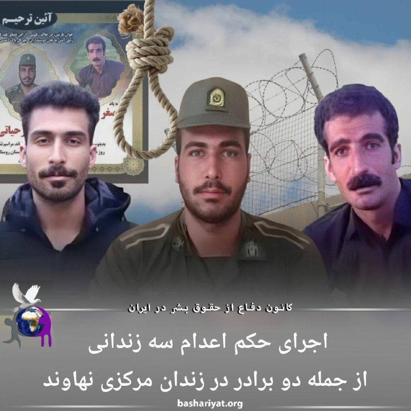 سحرگاه یکشنبه ۵ آذر ماه ۱۴۰۲ (٢۶ نوامبر ۲۰۲۳)،حکم اعدام #فرشید_پیرحیاتی و برادرش، #فرشاد_پیرحیاتی به همراه یک زندانی دیگر همپرونده آنها به نام #اصغر_سوری، در زندان مرکزی نهاوند استان #همدان اجرا شد. این زندانیان پیشتر به اتهام “قتل عمد” به #اعدام محکوم شده بودند.