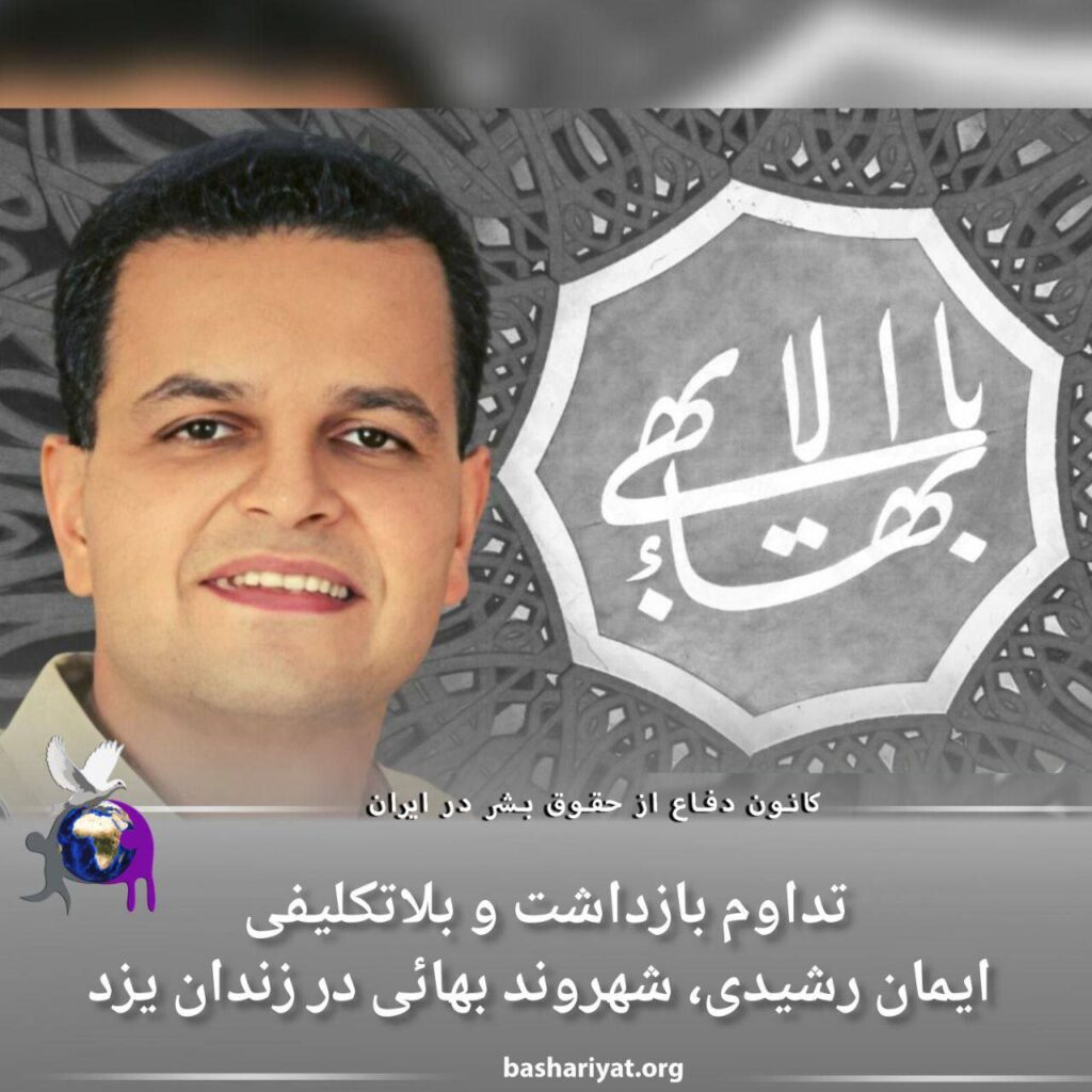 #ایمان_رشیدی، شهروند #بهائی ساکن یزد، علیرغم گذشت پنجاه و هفت روز از زمان دستگیری، کماکان به صورت بلاتکلیف در زندان این شهر بسر میبرد.اخیرا قرار بازداشت وی به مدت یک ماه دیگر تمدید شده است.آقای رشیدی پیشتر نیز به واسطه فعالیت های خود سابقه بازداشت و محکومیت دارد. وی در بهمن ماه سال ۹۶ با اتمام دوره محکومیت اززندان آزاد شد.