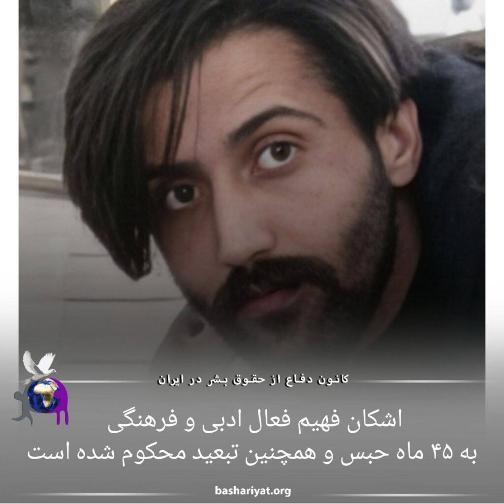 اشکان فهیم فعال ادبی و فرهنگی به ۴۵ ماه حبس و همچنین تبعید محکوم شده است