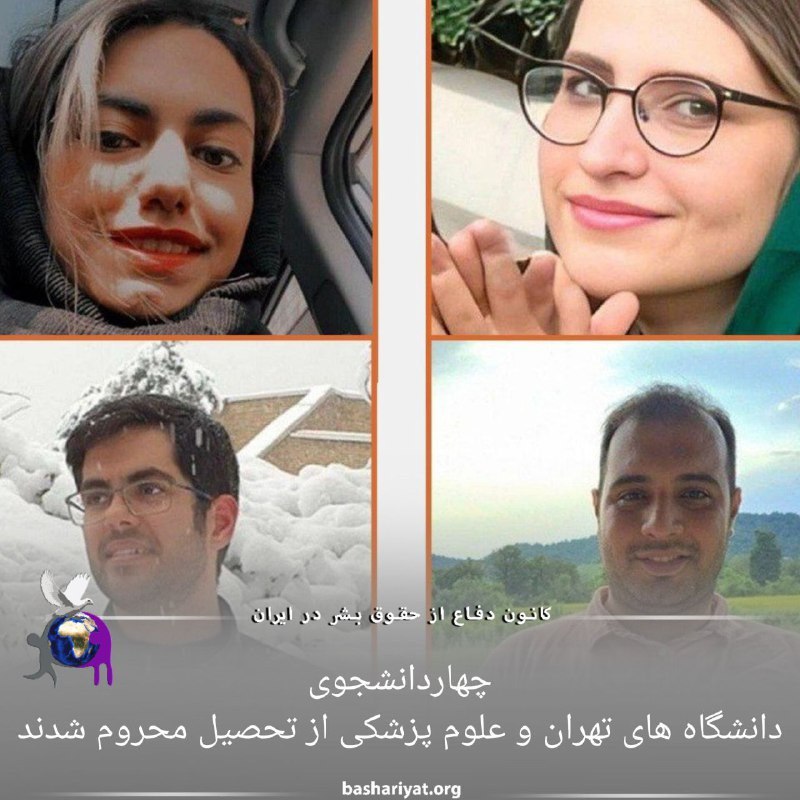 «انجمن اسلامی دانشجویان دانشگاه تهران و علوم پزشکی تهران» میگوید چهار عضو این انجمن هریک به مدت یک تا دو سال از تحصیل محروم شدهاند.