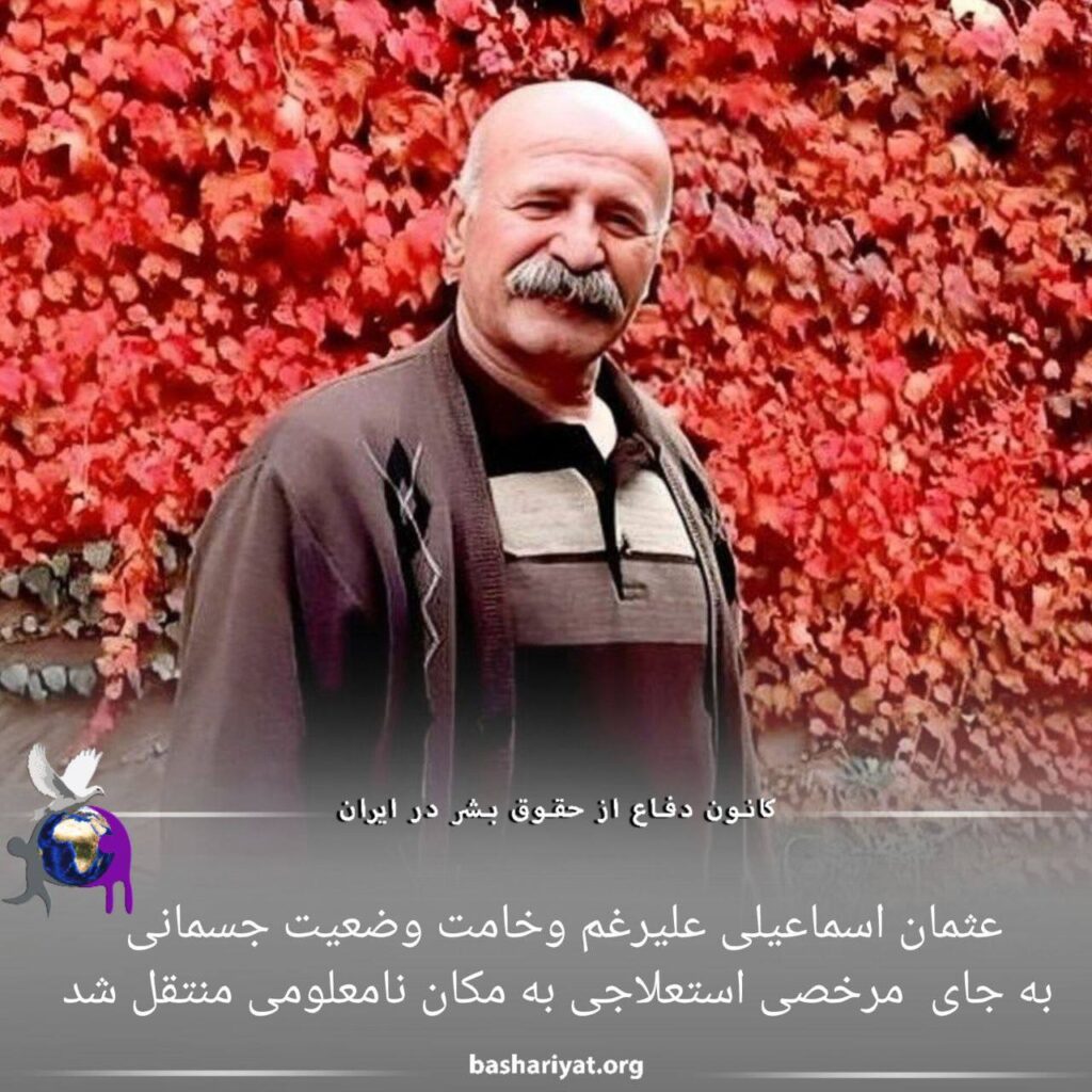 #عثمان_اسماعیلی، فعال کارگری کُرد اهل #سقز، با وجود وضعیت وخیم سلامتی و تودیع وثیقه برای دریافت مرخصی استعلاجی، توسط نیروهای حکومتی جمهوری اسلامی ایران از #زندان_سقز به مکان نامعلومی انتقال داده شد. این زندانی سیاسی در حال سپری کردن دوره محکومیت شانزده ماهه خود است.