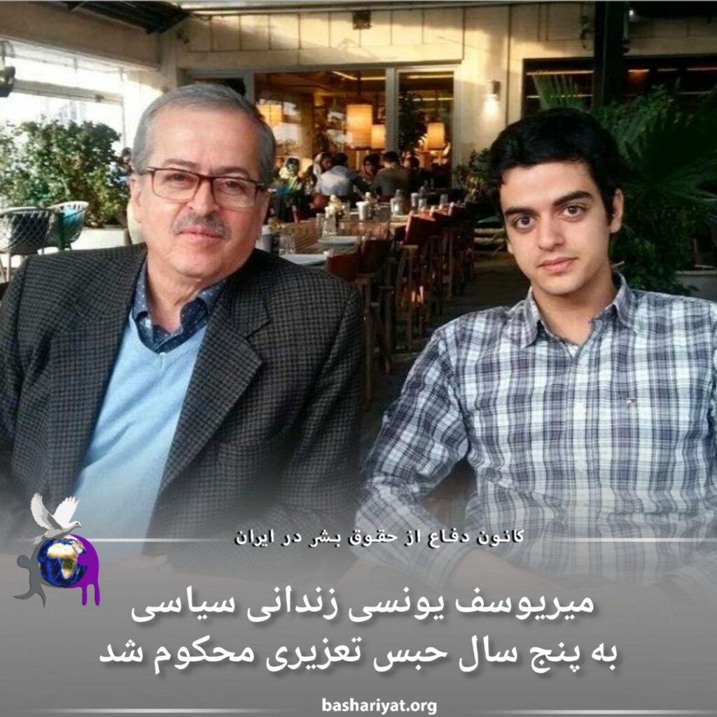 #میریوسف_یونسی زندانی سیاسی و پدر #علی_یونسی زندانی سیاسی محبوس در زندان اوین تهران، پس از یک سال بازداشت موقت توسط شعبە ٢٦ دادگاە انقلاب تهران بە ریاست قاضی ایمان افشاری بە پنج سال حبس تعزیری محکوم شده است.میریوسف یونسی روز ۷ دیماە سال ١٤٠١ درشهرستان شاهرود توسط نیروهای امنیتی بازداشت و بە بازداشتگاە اطلاعات تهران منتقل شد، وی پس از سە ماە بە بند عمومی اندان اوین و از آن زمان بە صورت بلاتکلیف در این زندان نگەداشتە شدە است.