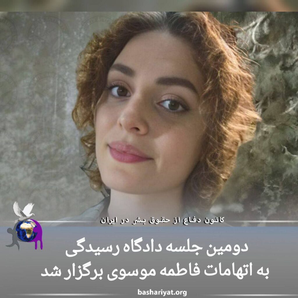 دومین جلسه دادگاه رسیدگی به اتهامات #فاطمه_موسوی، شهروند #ساکن تهران برگزار شد.در جریان این جلسه که روز دوشنبه بیست و پنجم دی ماه، در شعبه ۱۰۳ دادگاه عمومی بخش کهریزک به ریاست قاضی سید علی موسوی، برگزار شده، خانم موسوی از بابت اتهامات تبلیغ علیه نظام، اجتماع و تبانی علیه امنیت ملی، توهین به رهبری و تحریق و تخریب اموال عمومی به دفاع از خود پرداخت.