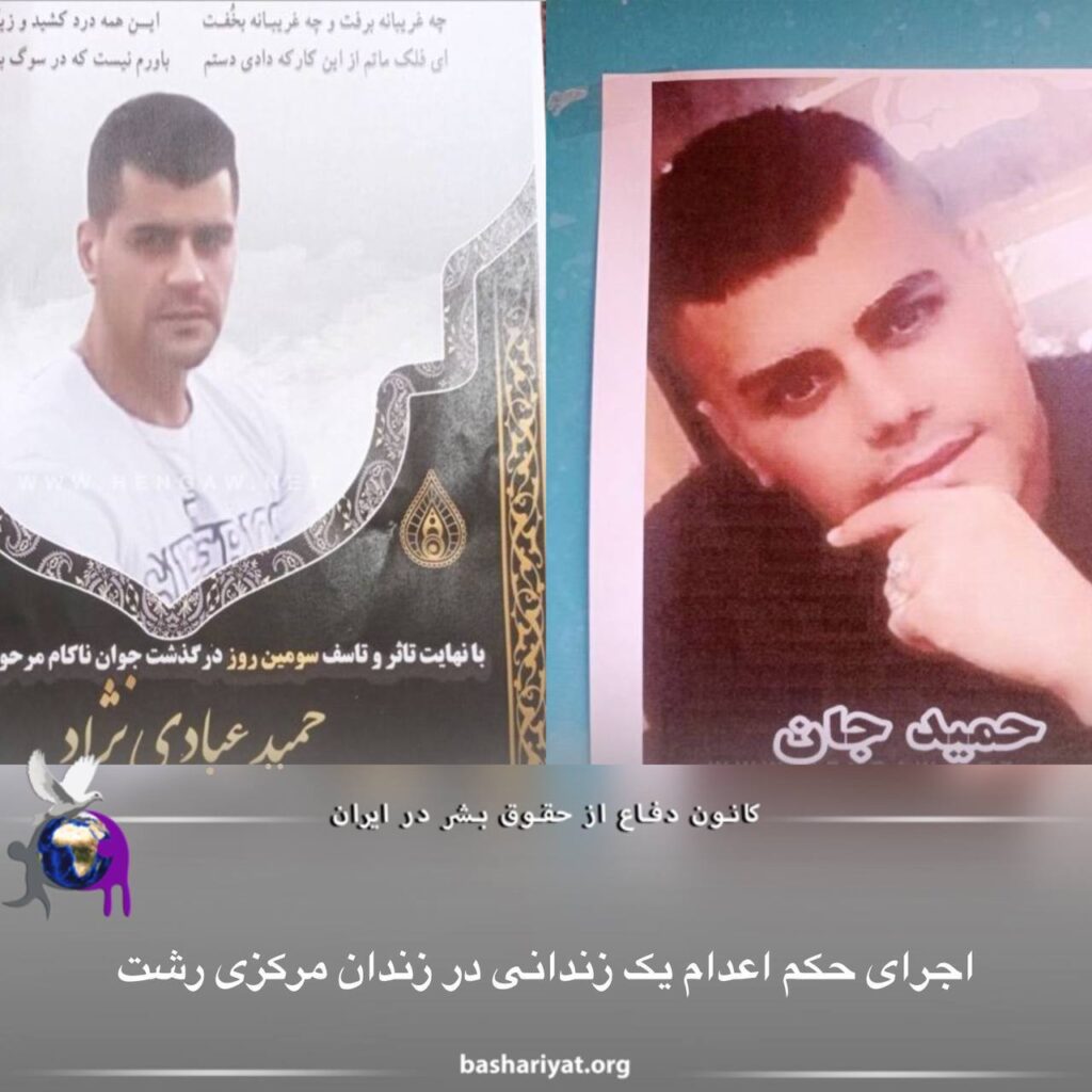 سحرگاه چهارشنبه ٢٧ دی ماه ١٤٠٢ (١٧ ژانویه ٢٠٢٤)، حکم اعدام #حمید_عبادی‌نژاد، شهروند #گیلک و اهل روستای سلیمان‌داراب از توابع شهرستان #رشت، در زندان مرکزی این شهر اجرا شد.این زندانی پیشتر بابت اتهامات مرتبط با جرایم مواد مخدر بازداشت و سپس توسط دستگاه قضایی جمهوری اسلامی ایران به #اعدام محکم شده بود.