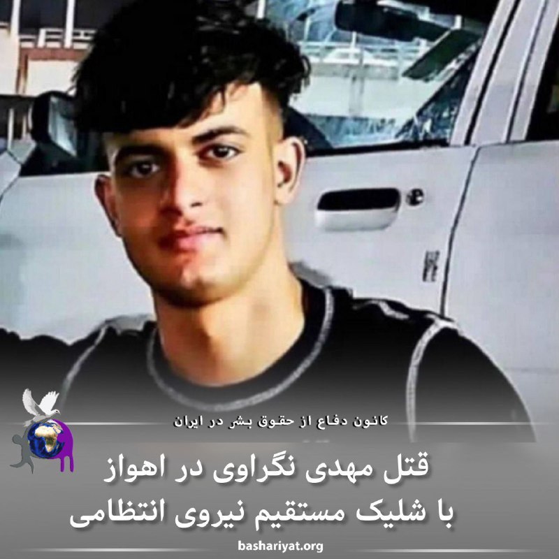 پنجشنبه ۵ بهمن ماه، یک جوان ۱۹ ساله به نام #مهدی_نگراوی با شلیک مستقیم گلوله توسط نیروی انتظامی در #لشگرآباد_اهواز به قتل رسیده است.مهدی نگراوی سوار بر موتورسیکلت در حال حرکت بوده است و علیرغم فرمان ایست توسط نیروی انتظامی، او همچنان به مسیر خود ادامه میدهد. در مقابل نیروهای انتظامی ، مهدی را مورد هدف گلوله مستقیم قرار داده و او را به قتل میرسانند.