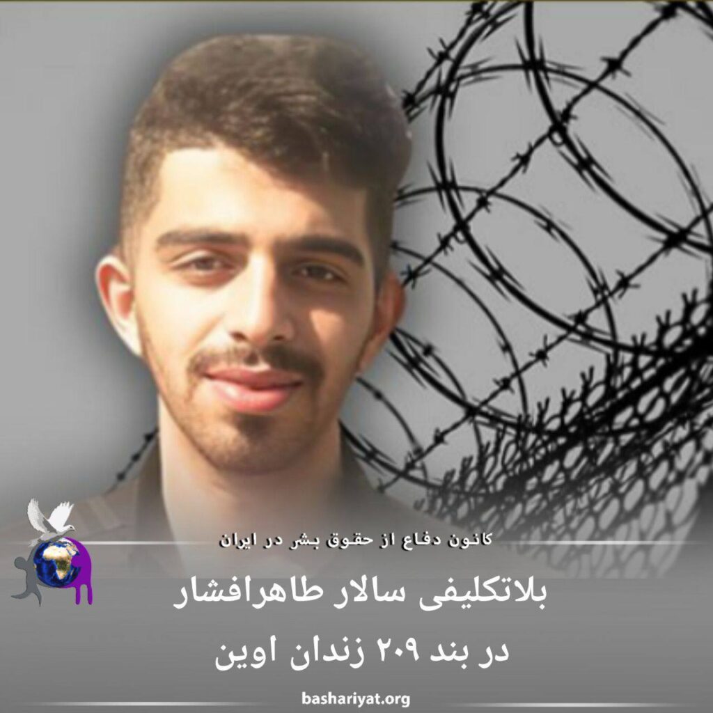 #سالار_طاهرافشار، فعال ترک علیرغم گذشت بیش از دو هفته از زمان دستگیری، کماکان بصورت بلاتکلیف در بازداشتگاه وزارت اطلاعات موسوم به بند ۲۰۹ زندان اوین بسر میبرد.