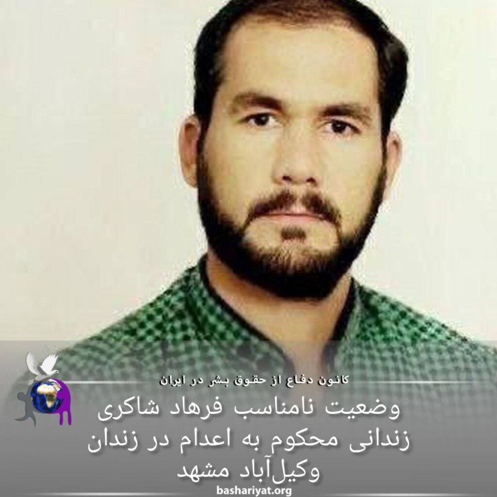 #فرهاد_شاکری اهل #گنبد_کاووس زندانی عقیدتی محکوم به #اعدام که در #زندان_وکیلآباد_مشهد محبوس است، به دلیل #شکنجه وعدم دسترسی به خدمات درمانی و پزشکی در وضعیت نامناسبی به سر میبرد. او در اعتراض به وضعیت خود چندین بار دست به اعتصاب غذا زد.