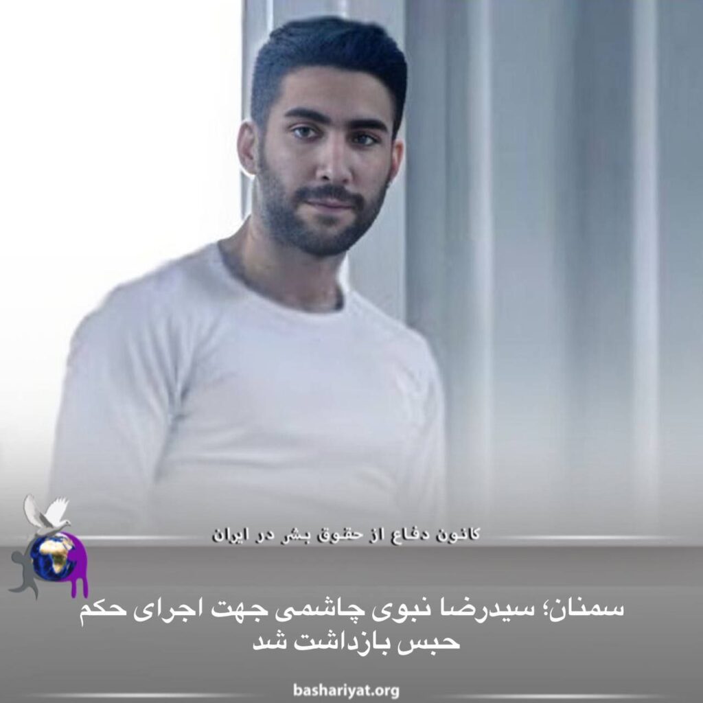 #سیدرضا_نبوی_چاشمی، شهروند اهل #سمنان، جهت اجرای حکم پنج سال حبس تعزیری خود، بازداشت و به زندان مرکزی این شهر منتقل شد.جزئیاتی در مورد مرجع قضایی صادرکننده حکم و اتهامات انتسابی به او، در دسترس نیست.