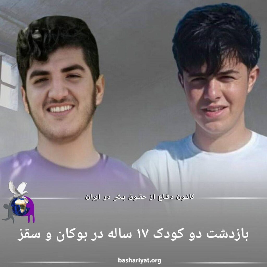 سهشنبه ٨ اسفند ماه ١٤٠٢، #متین_رازیان، اهل سقز توسط نیروهای اداره اطلاعات بازداشت شده است.از سوی دیگر، روز پنجشنبه ١٠ اسفند نیز، یک کودک ۱۷ ساله اهل روستای “داشبند” بوکان به نام #نوید_مصطفیزاده توسط نیروهای اداره اطلاعات بدون ارائه هرگونه برگه قضایی بازداشت شده است.این کودک حین بازگشت از باشگاه ورزشی در نزدیکی منزلشان واقع در محله صالحآباد سقز بازداشت شده است.