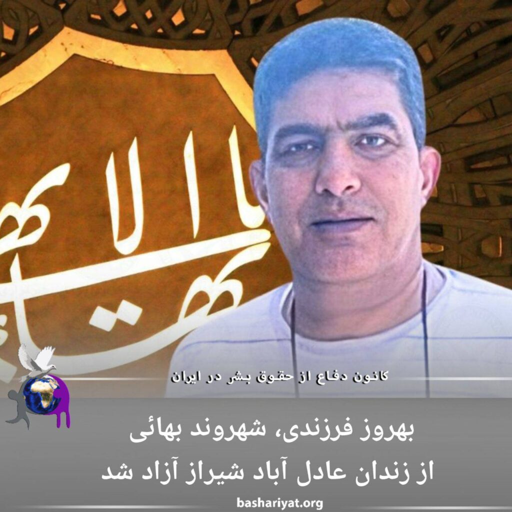 دوشنبه هفتم اسفندماه، #بهروز_فرزندی، شهروند #بهائی به صورت مشروط از زندان عادل آباد شیراز آزاد شد.آزادی آقای فرزندی پس از پذیرش درخواست آزادی مشروط او از زندان عادل آباد شیراز صورت گرفته است.