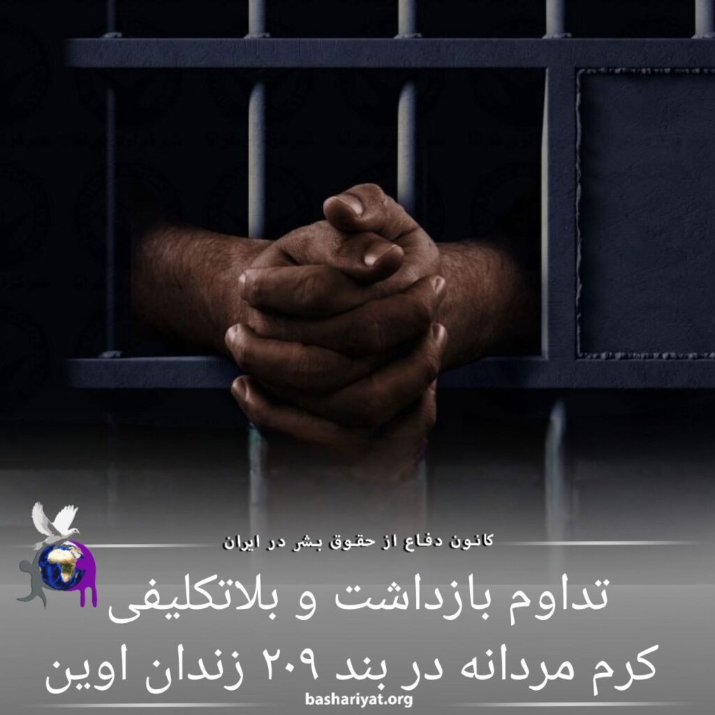 #کرم_مردانه، فعال ترک (آذربایجانی)، علیرغم گذشت بیش از یک ماه از زمان دستگیری، کماکان به صورت بلاتکلیف در بازداشتگاه وزارت اطلاعات موسوم به بند ۲۰۹ #زندان_اوین بسر میبرد.