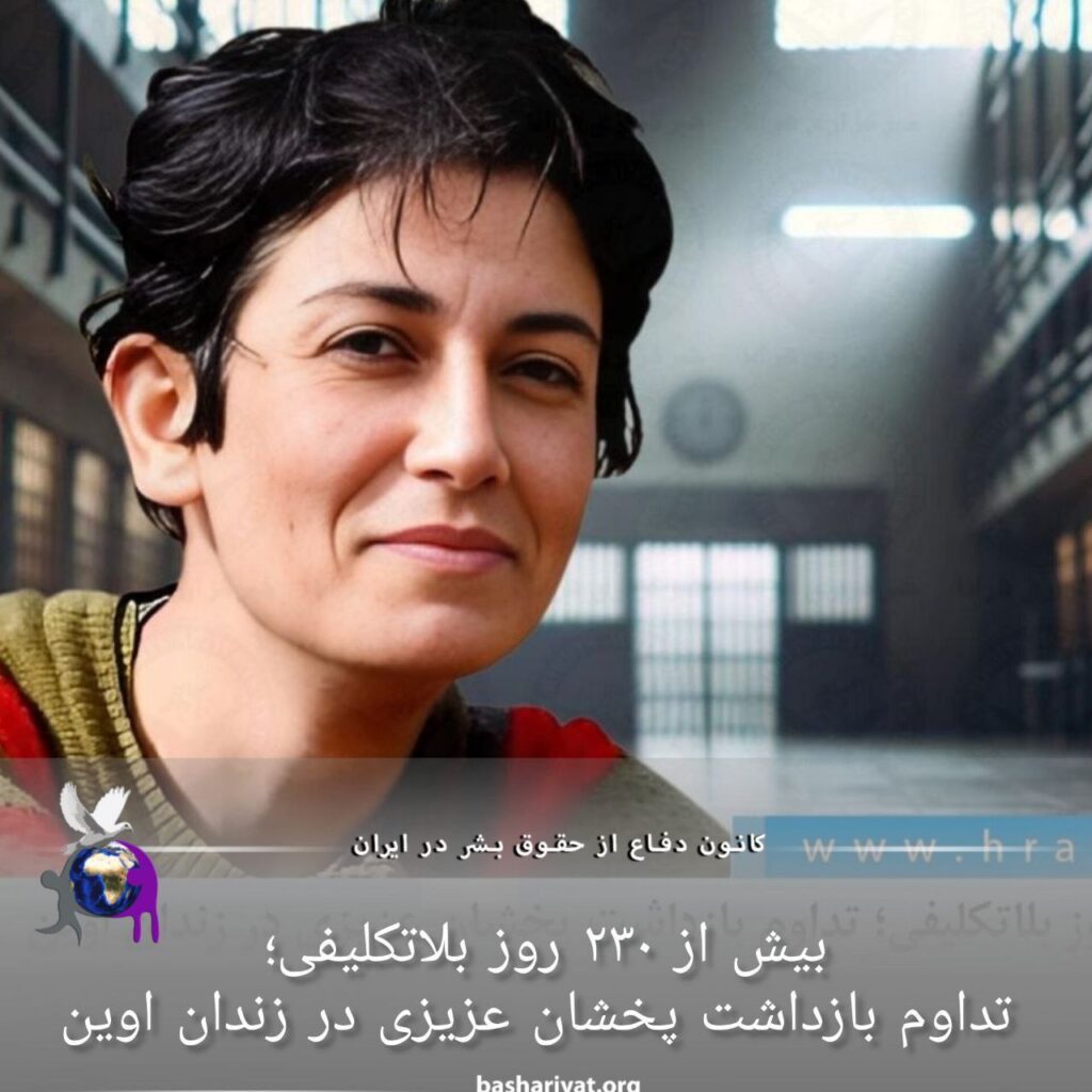 #پخشان_عزیزی، متهم #سیاسی علیرغم گذشت نزدیک به هشت ماه ( ۲۳۳ روز) از زمان دستگیری، کماکان به صورت بلاتکلیف در بند #زنان_زنداناوین بسر میبرد. همچنین پرونده وی با صدور کیفرخواست از بابت اتهام عضویت در جمعیت های معارض کشور به شعبه بیست و ششم دادگاه انقلاب تهران به ریاست قاضی ایمان افشاری ارجاع شده است، اما تا به این لحظه هیچ دادگاهی برای او برگزار نشده است.”