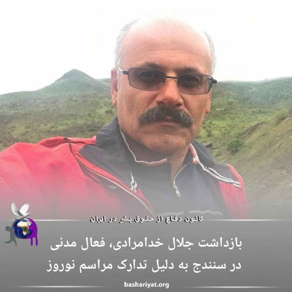 #جلال_خدامرادی، فعال مدنی اهل سنندج (سنه) در ارتباط با تدارک مراسم نوروز، توسط اطلاعات “فراجا” جمهوری اسلامی ایران بازداشت شد.