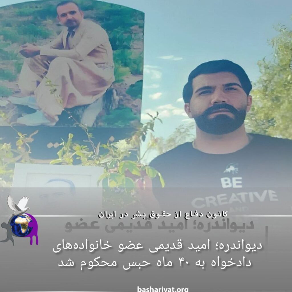 #امید_قدیمی، ٣٣ ساله، برادر #فواد_قدیمی از جانباختگان جنبش #ژن_ژیان_ئازادی و از اعضای خانوادههای دادخواه #دیواندره توسط دادگاه انقلاب این شهر به اتهام “عضویت در حزب کومهله” به ٣٢ ماه حبس و بابت “فعالیت تبلیغی علیه حکومت” به ٨ ماه زندان تعزیری و در مجموع، چهل ماه زندان محکوم شد.