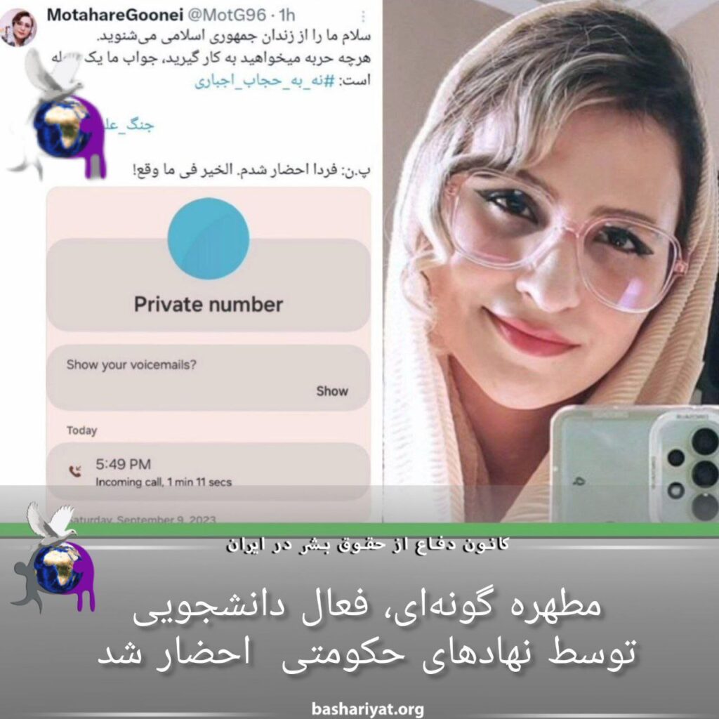 او مهر ماه ۱۴۰۱ توسط وزارت اطلاعات بازداشت شد. ماه‌ها ممنوع‌الورود بود. اردیبهشت ۱۴۰۲ به اتهام توهین به مقدسات مجددا به دادسرای شهیدمقدس “امنیت” #اوین احضار شد.مطهره با همه تهدیدها و فشارهای حکومت اما هیچگاه از اندیشه‌ها و اهدافش پا پس نکشیده است.خانم گونه‌ای اخیرا چند مطلب انتقادی که در سایت‌های داخلی هم منتشر شده بود، نوشته بود که آموزشکده توانا آن مطالب را بازنشر کرد.