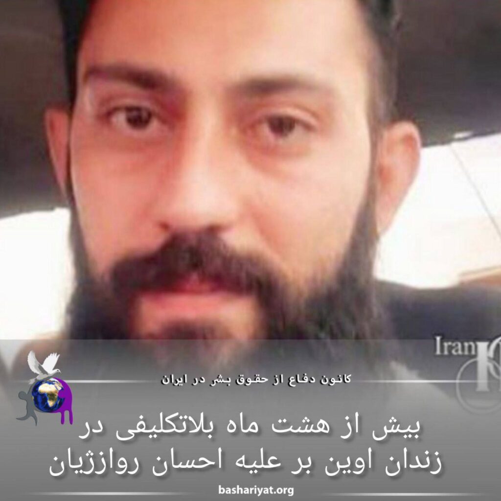 #احسان_روازژیان متولد ۱۳۷۰ اهل #پرندکه در ۱۷ مرداد ۱۴۰۲، در شهر #ملایر بازداشت شده، هم اکنون بیش از ۸ ماه است که در وضعیت بلاتکلیف در بند ۴ زندان #اوین بسر میبرد. وی به علت فعالیت در اینستاگرام دستگیر و بیش از ۷۰ روز در انفرادی و زیر شکنجه وبازجوییهای شدید قرار داشت.