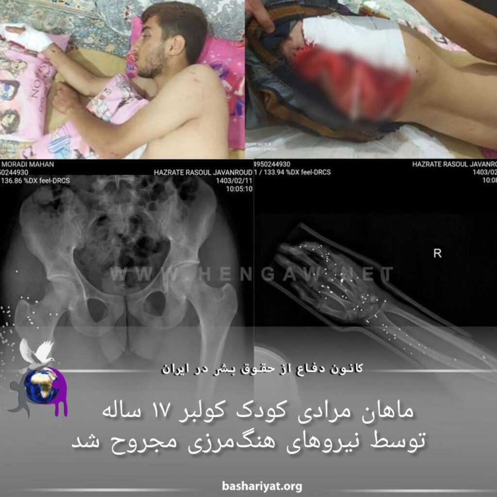 تصاویری از #ماهان_مرادی کودک #کولبر ۱۷ ساله اهل روستای دهلیلی (مله پَلَنگانه) از توابع #جوانرود که با شلیک مستقیم نیروهای #هنگمرزی به شدت مجروح شده است.