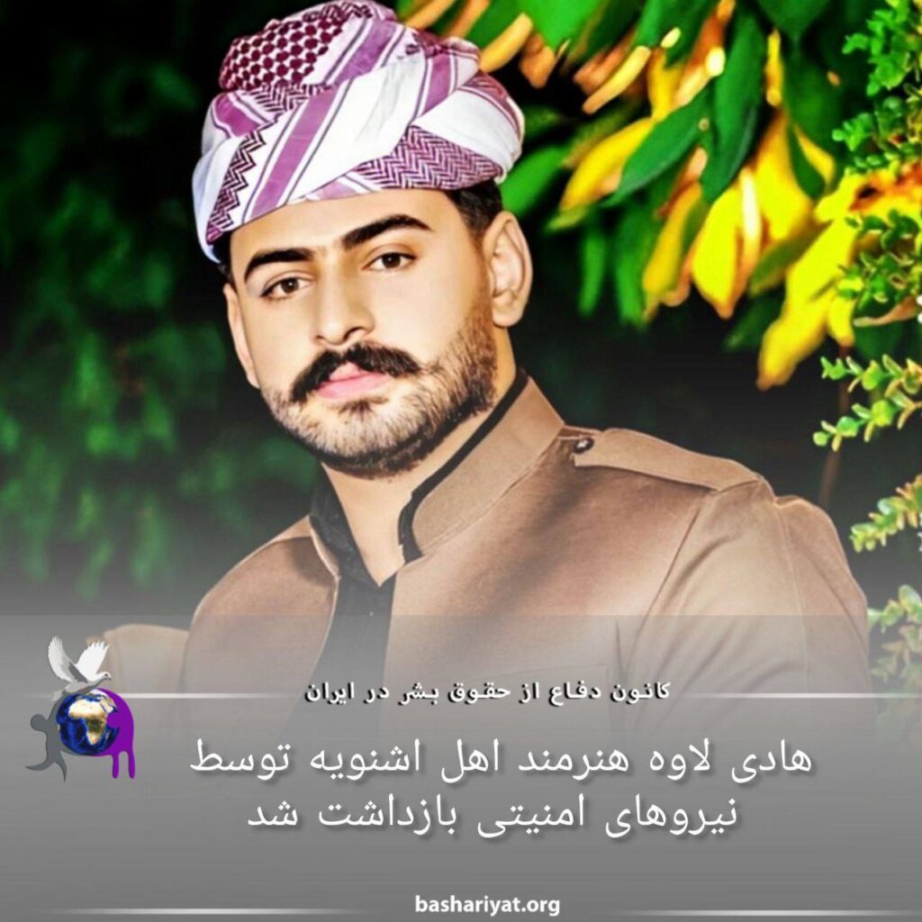 بامداد روز چهارشنبە ١٢ اردبیهشت ١٤٠٣ (١ می٢٠٢٤) #هادی_لاوە هنرمند جوان و اهل #اشنویە (شنو) توسط نیروهای حکومتی در این شهر بازداشت و بە مکان نامعلومی منتقل شد.