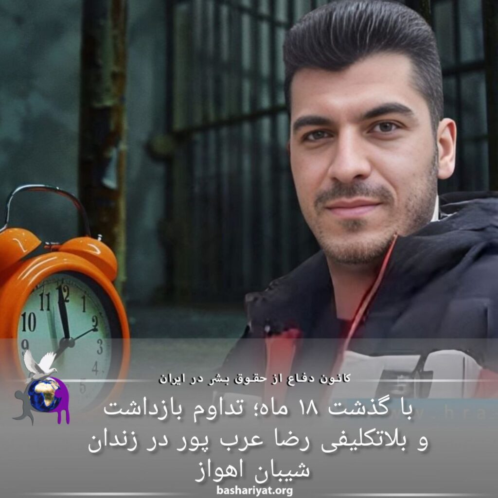 #رضا_عرب‌پور، شهروند بازداشت شده در جریان #اعتراضات‌سراسری‌۱۴۰۱ در #ایذه، علیرغم گذشت هجده ماه از زمان دستگیری، کماکان به صورت بلاتکلیف در #زندان_شیبان_اهواز بسر میبرد.پیشتر حسین علی خاتمی، وکیل مدافع این شهروند اعلام کرده بود که “هر ماه به تمدید قرار بازداشت رضا عرب پور اعتراض میشود”، درخواستی که همواره با بی توجهی مسئولان قضایی مواجه شده است.