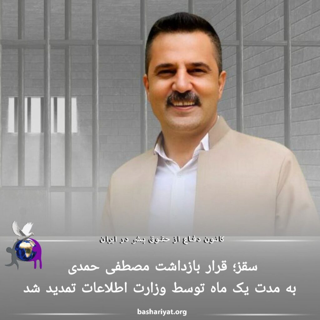باگذشت ۲۵ روز از بازداشت #مصطفی_حمدی فعال رسانەای اهل سقز، وزارت اطلاعات مانع آزادی موقت وی میشود و قرار بازداشت مصطفی حمدی بە مدت یک ماه دیگر تمدید شدە است.