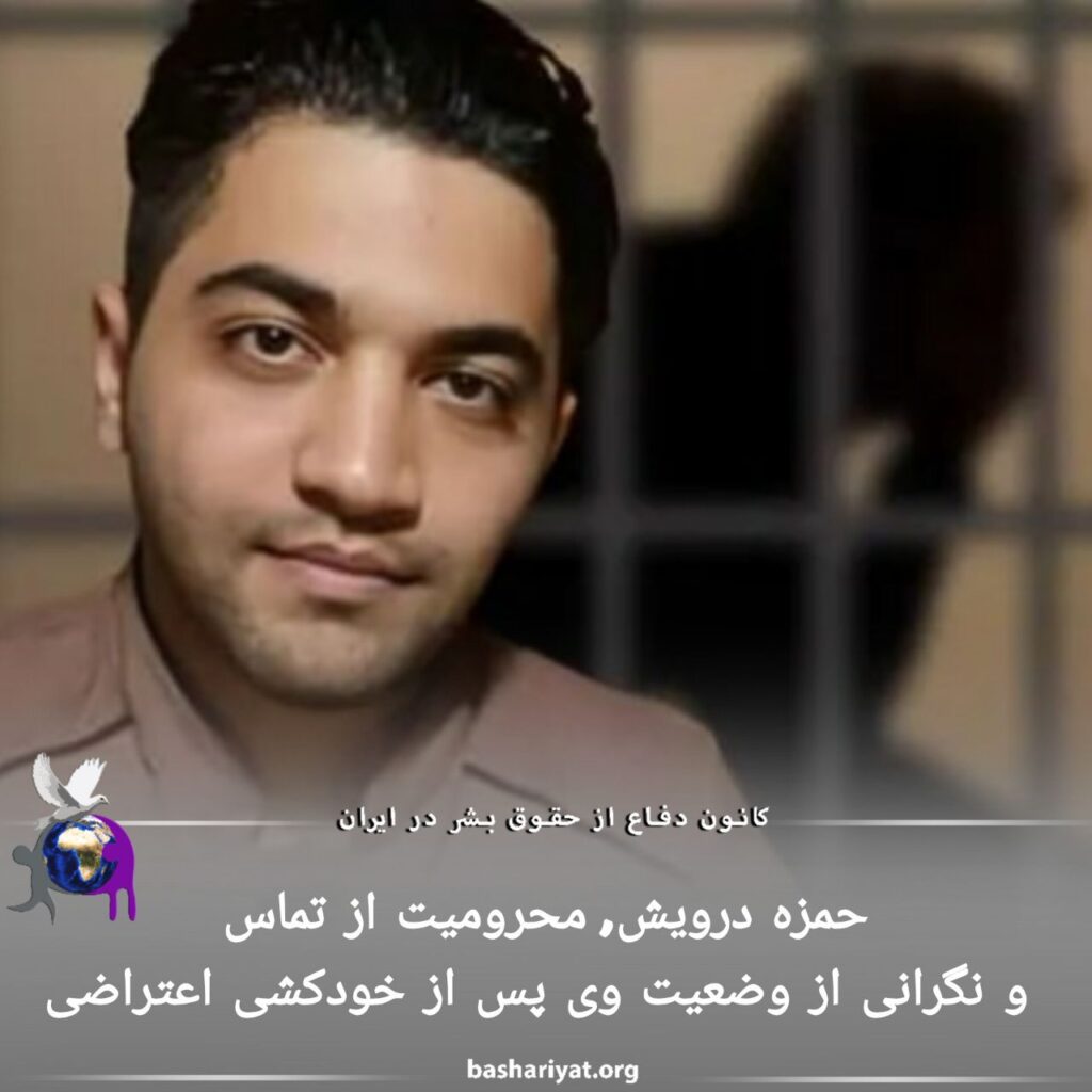 سهشنبه ۲۵ اردیبهشتماه ۱۴۰۳، #حمزه_درویش پس از اقدام به خودکشی اعتراضی، از تماس با خانواده محروم شده است.خانواده این زندانی از وضعیت او اطلاعی نداشته و در نگرانی از سلامتی و شرایط او به سر میبرند.