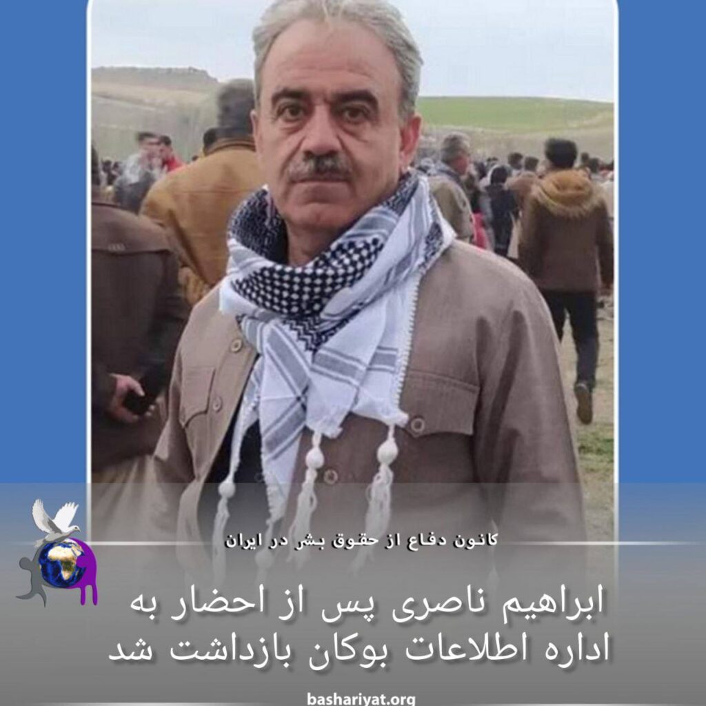 روز یکشنبه سیام اردیبهشت ١٤٠٣، #ابراهیم_ناصری، شهروند اهل #بوکان پس از احضار به اداره اطلاعات این شهرستان بازداشت شد.
