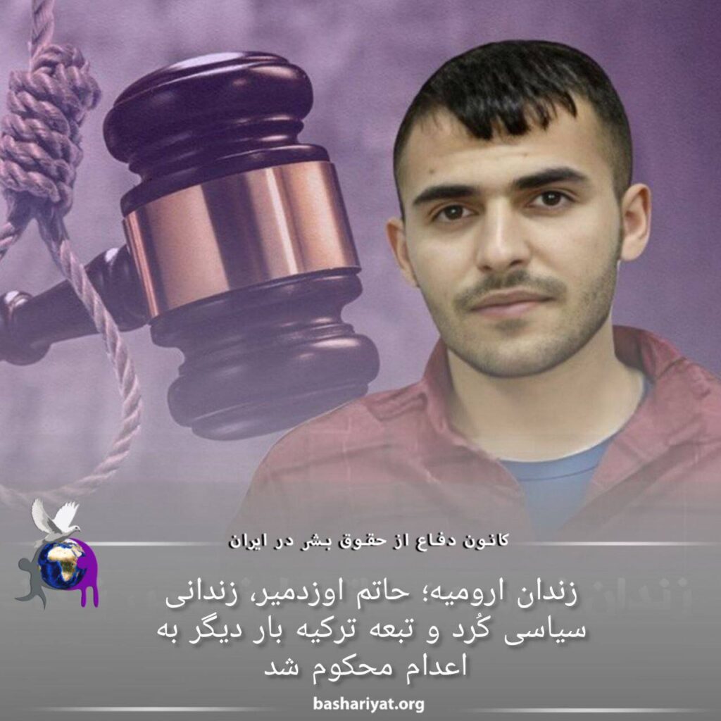 #حاتم_اوزدمیر، زندانی سیاسی #کرد و اهل استان آگری #کردستان_ترکیه، ۲۸ ساله، توسط شعبه ۳ دادگاه انقلاب اسلامی ارومیه به ریاست قاضی رضا نجفزاده به اتهام “محاربه” به اعدام محکوم و حکم مذکور روز یکشنبه ۳۰ اردیبهشت در زندان ارومیه با وجود نقض حکم #اعدام در دیوان عالی، به وی ابلاغ شد.حاتم اوزدمیر پیشتر و در حالی که ۳۳ ماه از بازداشتش گذشته بود؛ توسط شعبه اول دادگاه انقلاب خوی به اتهام “بغی” از طریق عضویت در حزب کارگران کُردستان (پ ک ک) به اعدام و ۵ سال حبس تعزیری محکوم شده بود.این حکم روز چهارشنبه ۲۴ اسفند ۱۴۰۰، رسماً توسط مسئولین زندان مرکزی ارومیه به وی ابلاغ شده بود.