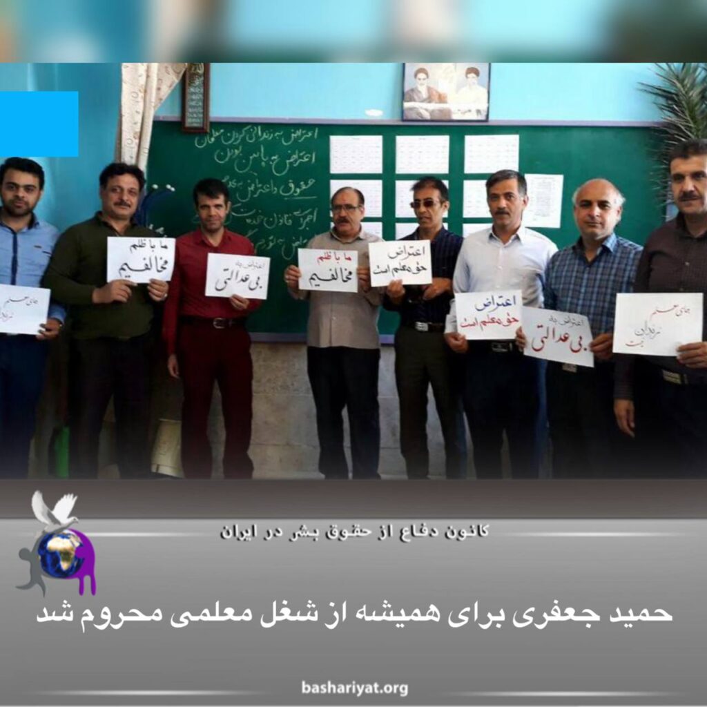 #حمید_جعفرینصرآبادی، آموزگاری که با حکم هیات تجدیدنظر اداره تخلفات وزارت آموزش و پرورش، “بازخرید” و “اخراج” شده بود، بعد از شکایت به دیوان عدالت اداری و تایید نظر هیات تخلفات از سوی این دیوان، برای همیشه از شغل خود “محروم“ شد .این آموزگار مهرماه ۱۴۰۱ در بحبوحه خیزش سراسری “زن، زندگی، آزادی” بازداشت و در دادگاه انقلاب کاشان به “۱۵ ماه و یک روز حبس”، “دو سال انفصال از خدمات دولتی و عمومی” و “ممنوعیت خروج از کشور”، محکوم شد.دلیل اخراج و بازخرید جعفرینصرآبادی، اتهام “تبلیغ علیه نظام” و “توهین به رهبر جمهوری اسلامی” بوده است.