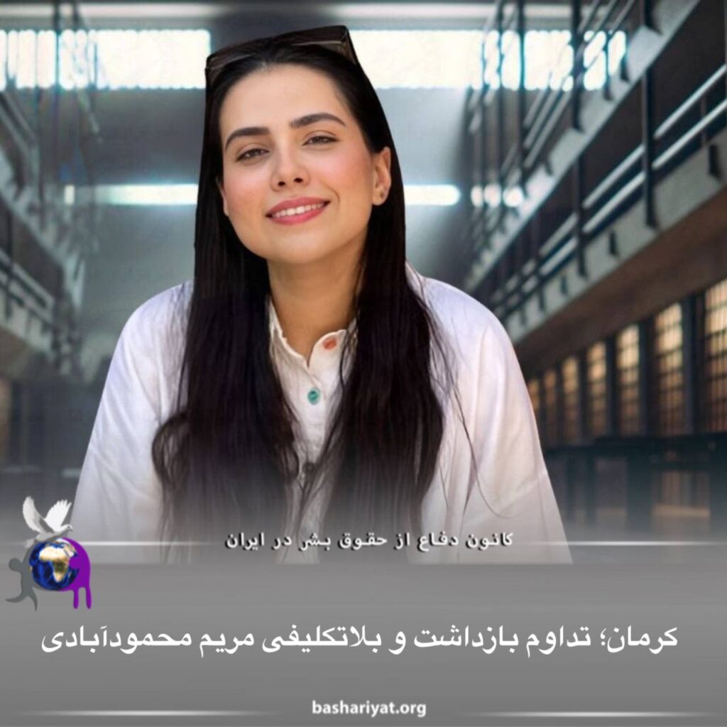 #مریم_محمودآبادی، شهروند اهل #کرمان، علیرغم گذشت هجده روز از زمان بازداشت، کماکان در بازداشتگاه اطلاعات سپاه این شهر در بلاتکلیفی بسر میبرد.این شهروند در تاریخ بیست و پنجم اردیبهشت ماه توسط نیروهای امنیتی در منزل شخصی خود در کرمان بازداشت شده بود.تاکنون از اتهامات مطروحه علیه این شهروند اطلاعی حاصل نشده است.خانم محمودآبادی پیشتر در جریان اعتراضات سراسری ۱۴۰۱ بازداشت و پس از مدتی با قرار تامین کیفری از زندان شهاب کرمان آزاد شده بود.