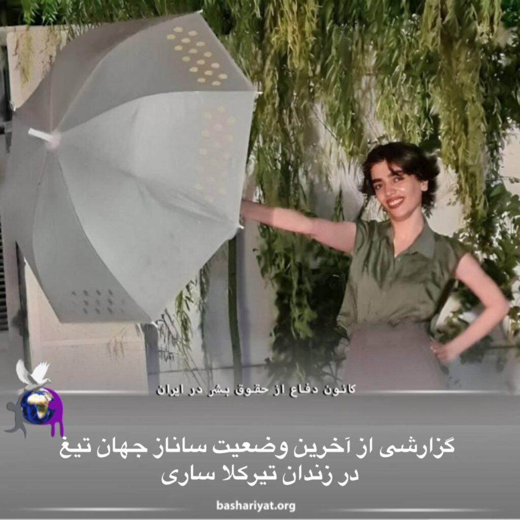 #ساناز_جهان_تیغ، زندانی سیاسی و از بازداشت شدگان اعتراضات سراسری ۱۴۰۱، دوران محکومیت خود را در زندان تیرکلا ساری سپری میکند. وی پیشتر توسط دادگاه انقلاب ساری به دو سال و شش ماه حبس محکوم شده بود.خانم جهان تیغ اوایل شهریورماه سال گذشته توسط نیروهای امنیتی بازداشت شد، او در تاریخ هجدهم شهریورماه همان سال، توسط دادگاه انقلاب ساری به دو سال و شش ماه حبس محکوم شد.
