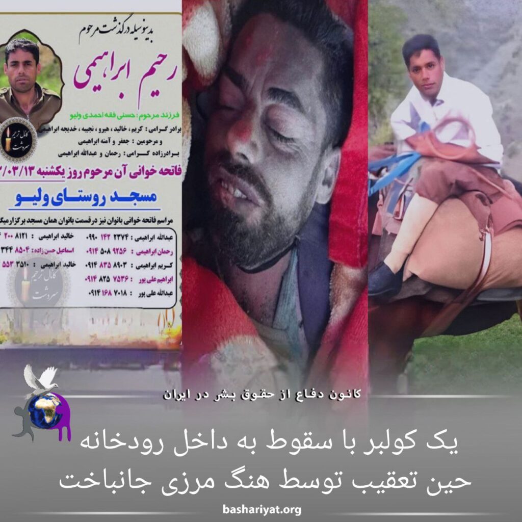 یک #کولبر اهل #سردشت به نام #رحیم_ابراهیمی، در جریان تعقیبوگریز و تیراندازی توسط نیروهای هنگ مرزی جمهوری اسلامی ایران در ارتفاعات مرزی سردشت، به داخل آب رودخانه سقوط کرد و کشته شد.