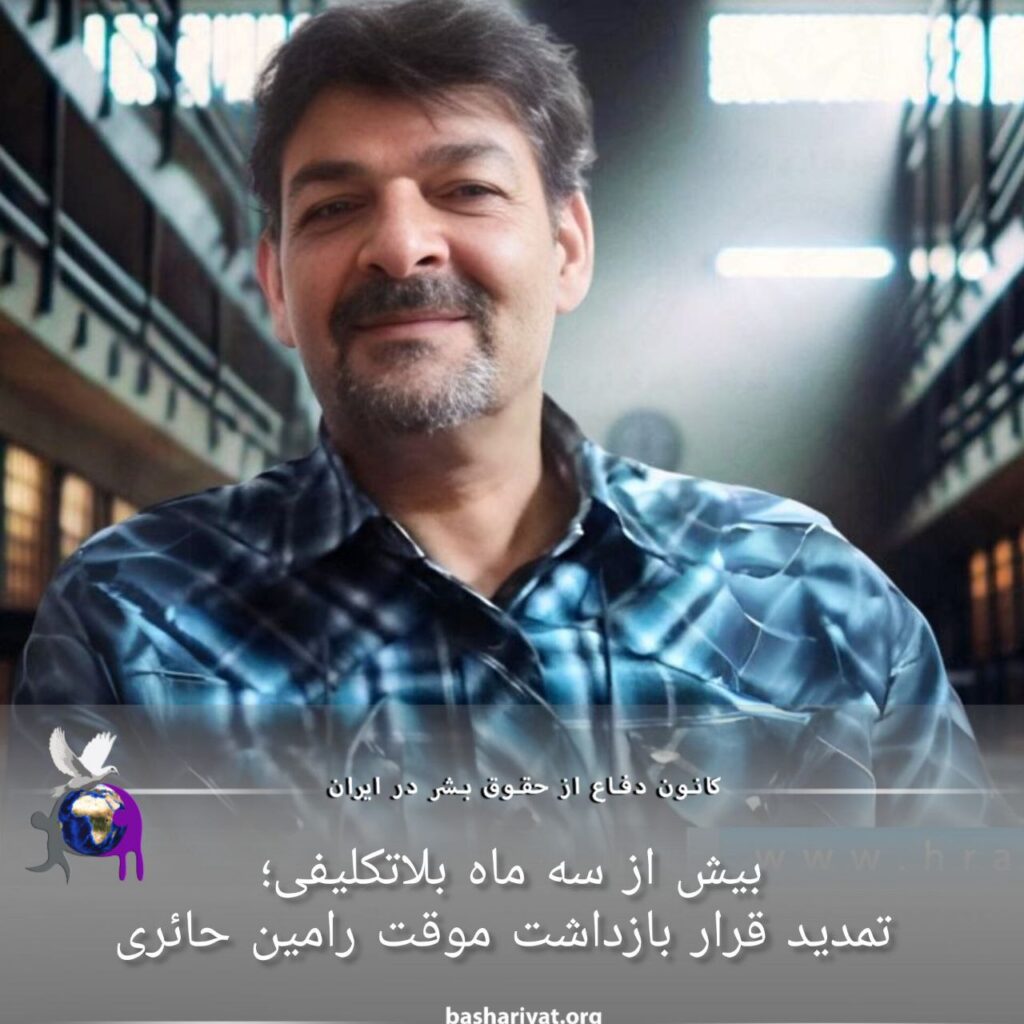 #رامین_حائری، متهم سیاسی علیرغم گذشت بیش از سه ماه از زمان بازداشت، کماکان به صورت بلاتکلیف در #زندان_وکیل‌آباد_مشهد بسر میبرد. اخیرا قرار بازداشت موقت آقای حائری به مدت یک ماه دیگر تمدید شده است.