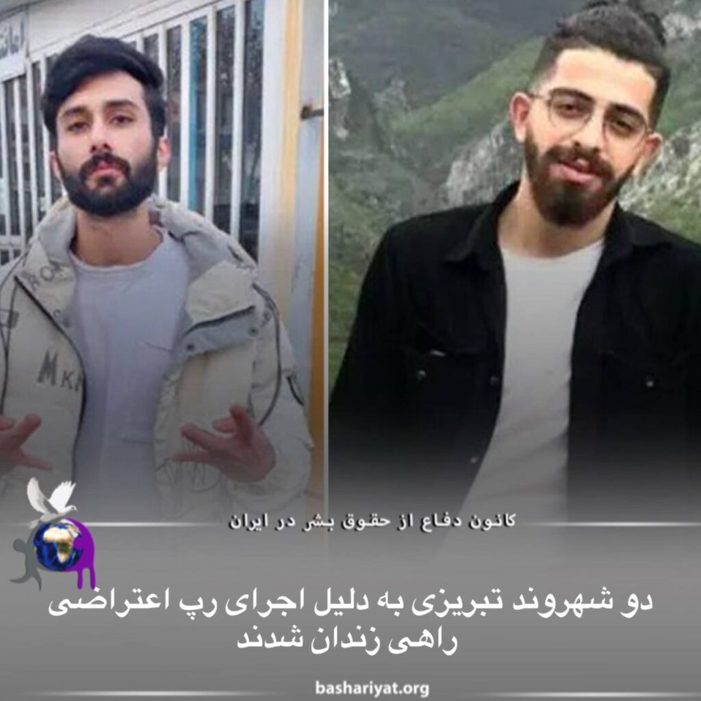 #میلاد_جلیلی، خوانندهٔ معترض، و #سالار_طاهرافشار، فعال مدنی اهل #تبریز، برای اجرای حبس به #زندان_تبریز منتقل شدند.آقای طاهرافشار روز چهارشنبه، ۱۶ خرداد، «پس از معرفی و انجام مراحل اداری» برای اجرای حکم شش ماه زندان راهی زندان شد. آقای جلیلی، رَپِر ملقب به «ایلشن»، نیز به دلیل اتمام وقت اداری در روز ۱۶ خرداد، خود را روز پنجشنبه، ۱۷ خرداد، به اجرای احکام معرفی کرده است.این دو شهروند تبریزی آذرماه پارسال پس از اجرای یک ترانه توسط میلاد جلیلی در حمایت از زندانیان سیاسی آذربایجانی، بازداشت و پس از دو ماه به قید وثیقه و بهصورت موقت از زندان تبریز آزاد شدند.
