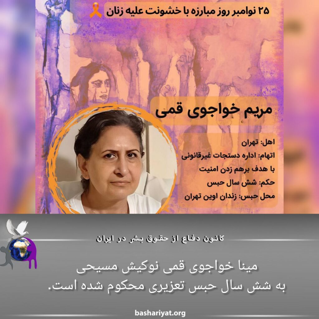 مینا خواجوی قمی⁩ نوکیش مسیحی بە شش سال حبس تعزیری محکوم شدە است