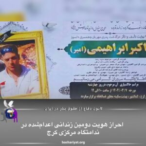 هویت او #اکبر_ابراهیمی، معروف به #امیر_ابراهیمی، فرزند سید رضا، متاهل و پدر یک دختر احراز شده است. وی همزمان با #رحیم_امیری در این زندان اعدام شده است.