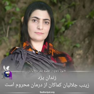 #زینب_جلالیان، زندانی سیاسی، ۱۸ سال از حکم حبس ابد خود را بدون برخورداری از رعایت اصل تفکیک جرائم در #زندان_یزد سپری میکند. این زندانی با وجود وضعیت جسمانی نامناسب و تاکید پزشکان مبنی بر ضرورت انجام فوری عمل جراحی، کماکان از رسیدگی تخصصی پزشکی محروم مانده است.